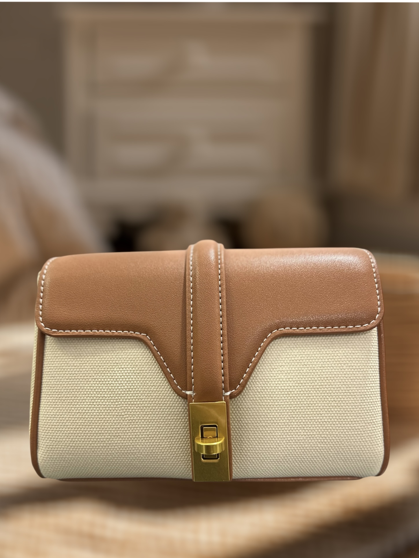 Colore: Cuoio e Beige combinazione di pelle e tessuto canvas