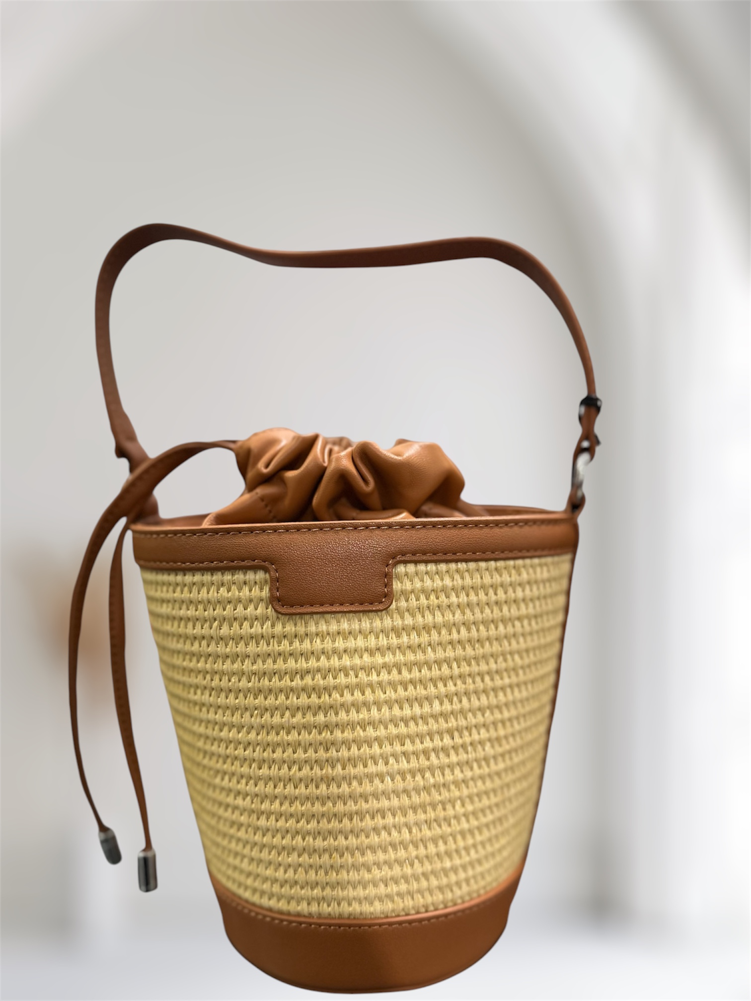 Borsa Summer Bucket, colore Beige e cuoio inserti in pelle